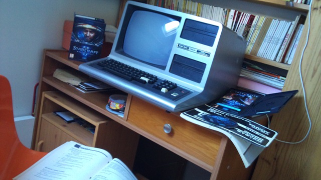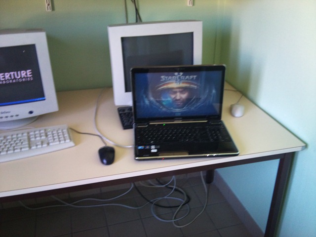 J’ai bien essayé de le faire marcher sur le vieux Tandy de mon père (un des premier ordinateurs de l’histoire avec 16Ko de RAM et des sauvegardes sur cassettes audio ^^ Le fin du fin ! (c’est sur ce genre d’ordis que l’ont programmait Pong pour vous donner une idée)) Je me suis dit pourquoi pas StarCraft II ?