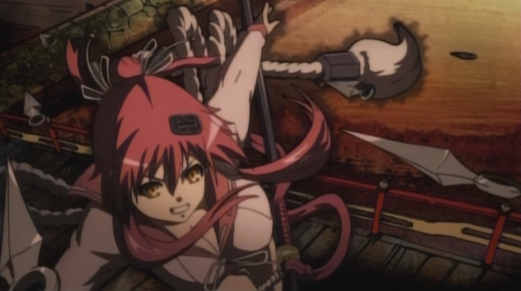 Sa mission ? Se débarrasser de Yukimura Sanada ! Or comme Muneakira n’est pas sensé être là, elle le prend pour un rebelle ! Ne comprenant pas grand chose à tous cela Muneakira décide de se sauvé avec les deux rebelles.